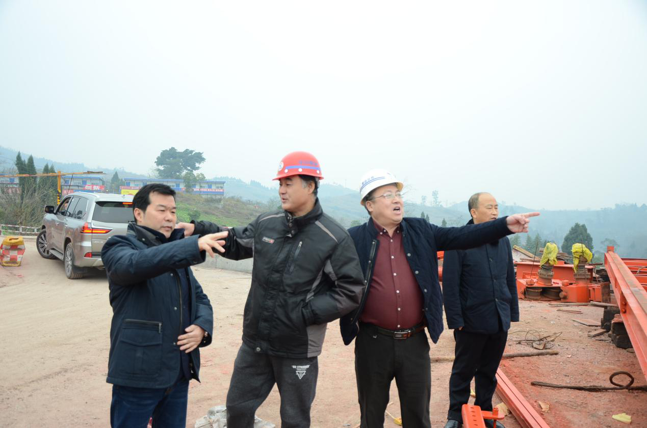 謝董事長一行深入鐵山隧道出口、鐵山互通及L連接線、LJ07合同段一號(hào)梁場(chǎng)及州河特大橋引橋營山岸橋臺(tái),調(diào)研了施工進(jìn)度、下步工期安排。