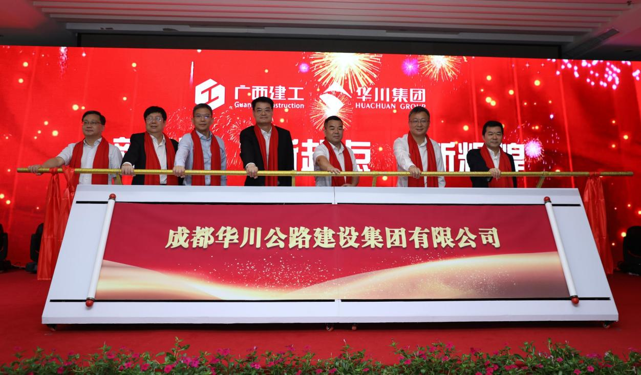 廣西自治區(qū)國資委副主任唐愛斌,廣西建工集團(tuán)董事長、黨委書記金寧運(yùn),四川省交通運(yùn)輸廳副廳長朱學(xué)雷,工商銀行四川省分行副行長張江山,華川集團(tuán)董事長、總經(jīng)理、黨委書記謝應(yīng)文在儀式上分別致辭、見證簽約,并共同為混改后的華川集團(tuán)揭牌。