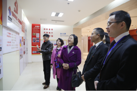 陳主席一行首先參觀了集團(tuán)黨員活動(dòng)室和企業(yè)文化宣傳區(qū),高度肯定集團(tuán)黨建工作和文化建設(shè)工作。陳主席在參觀過(guò)程中說(shuō)到,華川集團(tuán)黨建陣地建設(shè)十分出色,集團(tuán)黨建工作充分、扎實(shí),值得學(xué)習(xí)和借鑒。在座談會(huì)上,陳主席一行觀看了集團(tuán)宣傳片,全面了解了集團(tuán)經(jīng)營(yíng)理念、發(fā)展歷程、社會(huì)責(zé)任和企業(yè)榮譽(yù)等信息。隨后,集團(tuán)副董事長(zhǎng)駱小紅向陳主席一行介紹了集團(tuán)產(chǎn)業(yè)發(fā)展、重點(diǎn)項(xiàng)目和企業(yè)管理等相關(guān)情況。