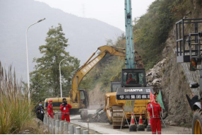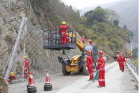 集團參演科目為S105線南壩路段受到地震引發(fā)的次生災(zāi)害影響,導(dǎo)致山體滑坡、塌方,需要緊急搶通。演練中,根據(jù)指揮部命令,集團迅速組織應(yīng)急救援隊伍到達(dá)受災(zāi)路段,快速清理塌方、落石,并與武警救援力量密切合作,共同完成了靠山體一側(cè)的高空作業(yè),成功搭建起20米長的防護網(wǎng),在最短時間內(nèi)打通了青川至平武方向生命通道,為后續(xù)災(zāi)區(qū)救援爭取了寶貴時間,圓滿完成了演練任務(wù)。