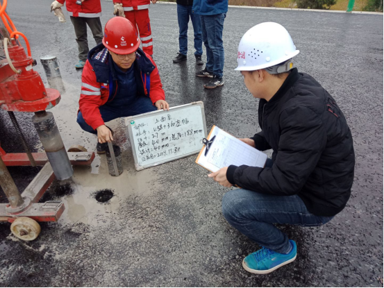 此次預(yù)驗收檢查組由業(yè)主公司、監(jiān)理駐地辦、監(jiān)理試驗室、總包部以及第三方檢測機構(gòu)代表共同組成。嚴(yán)格按照交驗的技術(shù)標(biāo)準(zhǔn)及設(shè)計要求進(jìn)行,對K52+601.6~K59+125處全幅段落路面施工的寬度、橫坡、厚度、壓實度、滲水系數(shù)等指標(biāo)嚴(yán)格檢測。