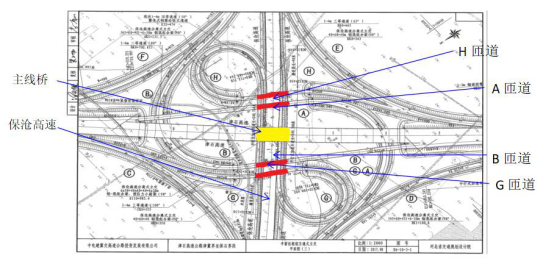 作為一個(gè)“高跨高”工程,其中有6條匝道順接保滄高速實(shí)行兩條高速公路車(chē)輛自由轉(zhuǎn)換,同時(shí)設(shè)計(jì)有5座橋梁上跨保滄高速,均采用60m跨度的鋼箱梁一次跨越,在保滄高速中隔帶內(nèi),未設(shè)置橋墩。擺在津石總包部面前有很多難題需要克服。如保滄高速交通流量大,斷交時(shí)間不足的問(wèn)題;安全隱患高;賠償費(fèi)用高;大縱坡,小半徑的問(wèn)題;行政主管部門(mén)要求高等問(wèn)題。