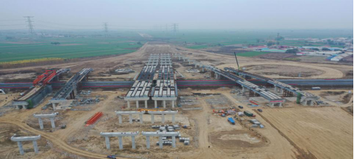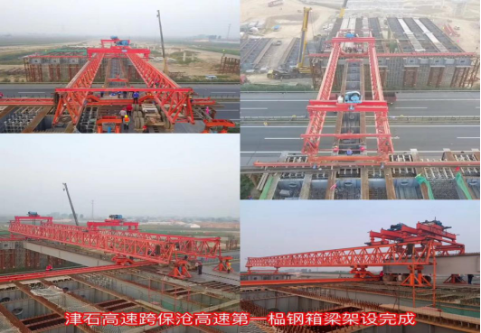 辛留佐樞紐互通位于高陽(yáng)縣辛留佐村東,是津石高速全線(xiàn)僅有的三座跨接高速施工樞紐互通之一,主要用于津石高速與保滄高速交通流相互轉(zhuǎn)換,互通型式采用變形苜蓿葉加半直連式匝道,設(shè)計(jì)主線(xiàn)和11處匝道,分別上跨保滄高速5次,互通區(qū)內(nèi)設(shè)置主線(xiàn)橋500米/1座,匝道橋940米/4座,通道涵洞10道。鋼箱梁跨徑60米,橋梁下部結(jié)構(gòu)均設(shè)計(jì)在保滄高速路基坡腳兩側(cè),該互通上跨部分均為鋼結(jié)構(gòu)箱梁,共計(jì)14片,需要14次跨越保滄高速進(jìn)行架設(shè),其中鋼結(jié)構(gòu)箱梁最大長(zhǎng)度為35米,總量101噸,由于要上跨河北省正在運(yùn)行的交通主干道保滄高速公路進(jìn)行施工,該項(xiàng)工作更是成為了津石高速JSLQ5標(biāo)的年度重點(diǎn)工作,同時(shí)也備受各方關(guān)注。